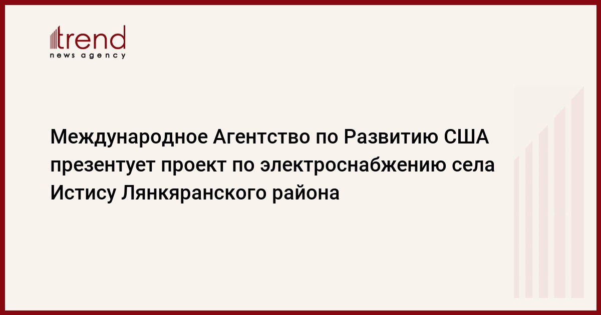 Международное Агентство по Развитию США (USAID) 28 ноября проведет презентацию проекта по электроснабжению села Истису Лянкяранского района Азербайджана. Об этом Trend сообщили в посольстве США в Азербайджане.