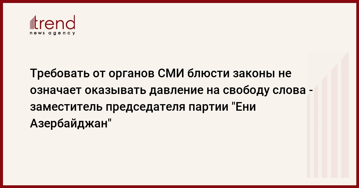 Я не воспринимаю всерьез мнения по поводу ухудшения в Азербайджане ситуации со свободой слова и прессы. Требовать от органов СМИ блюсти законы не означает оказывать давление на свободу слова и прессы. Как передает Trend , об этом журналистам сообщил исполнительный секретарь, заместитель председателя правящей партии "Ени Азербайджан", депутат Али Ахмедов.