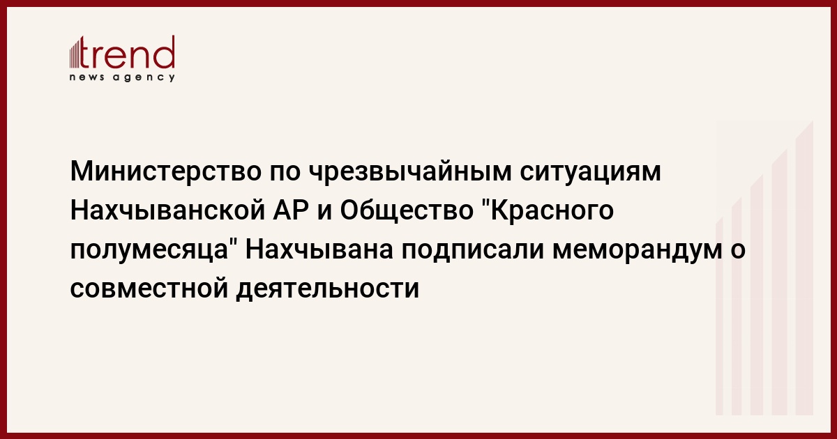Министерство по чрезвычайным ситуациям Нахчыванской АР и Общество "Красного полумесяца" Нахчывана подписали меморандум о совместной деятельности. Как передает региональный корреспондент " Trend а", подписание меморандума предусматривает тесные отношения между двумя организациями в области подготовки к чрезвычайным ситуациям.