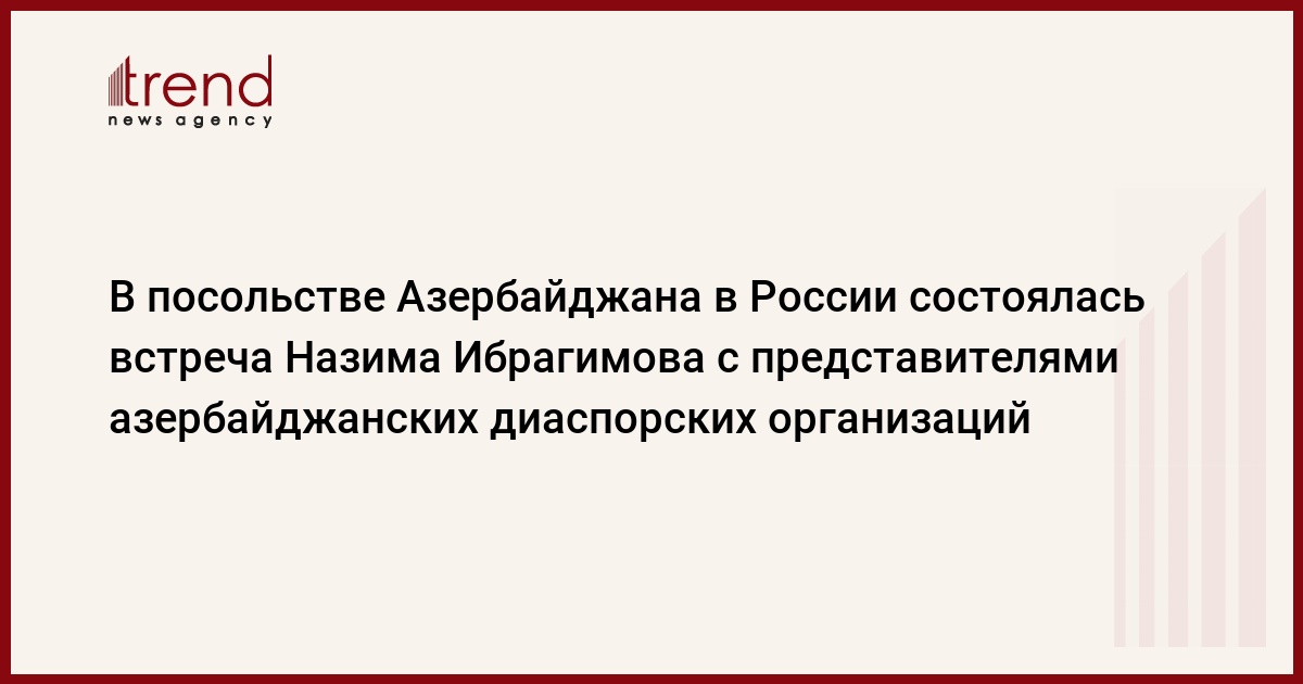 В рамках визита председателя Государственного комитета по работе с азербайджанцами, проживающими за рубежом Назима Ибрагимова в Москву в посольстве Азербайджана в России 10 декабря прошла встреча делегации с руководителями и представителями диаспорских организаций в этой стране.