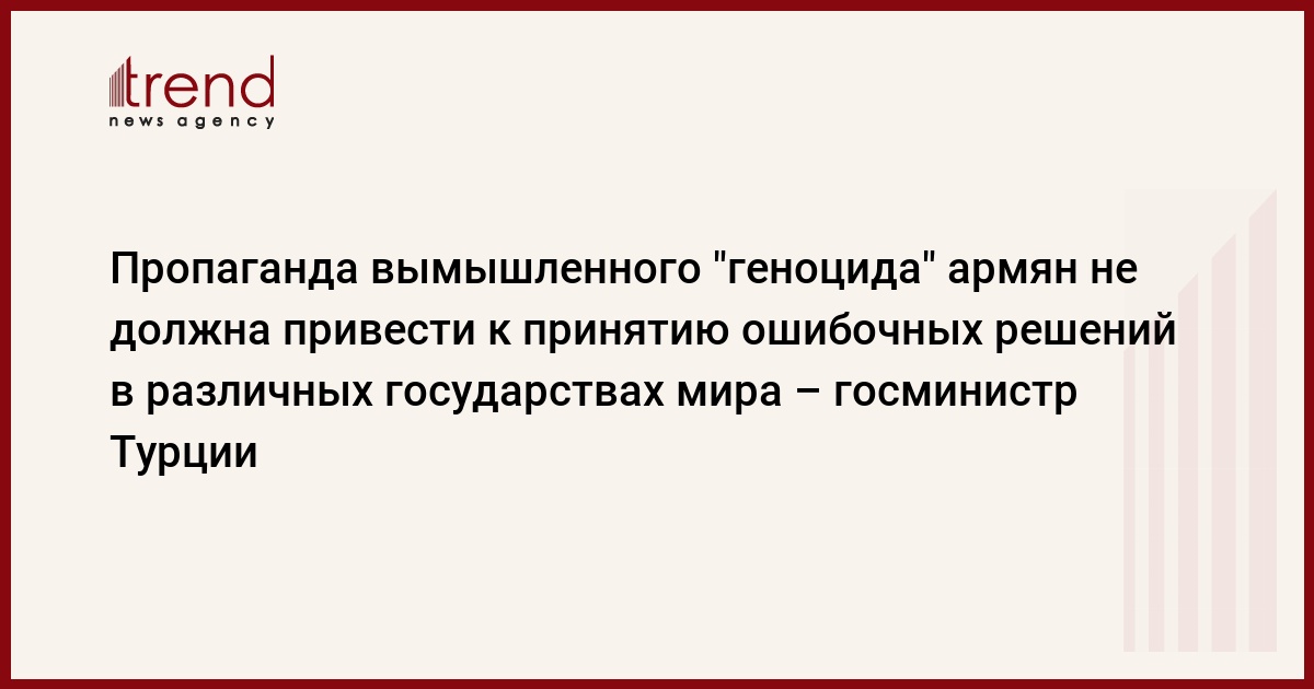 "Несмотря на то, что армянская диаспора делает все возможное для принятия антитурецких решений, официальная Анкара непреклонна и не при каких обстоятельствах не допустит признания исторически необоснованных, открыто вымышленных интерпретаций событий последних лет существования Османской Империи", отметил министр.