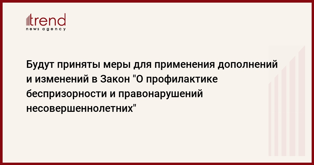 Президент Азербайджана Ильхам Алиев подписал распоряжение о применении Закона о внесении изменений и дополнений в Закон "О профилактике беспризорности и правонарушений несовершеннолетних".