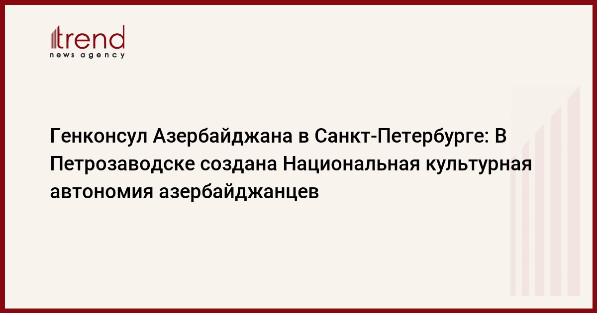 В Петрозаводске создана Национальная культурная автономия азербайджанцев. Об этом Trend сообщил Генеральный консул Азербайджана в Санкт-Петербурге Гудси Османов.
