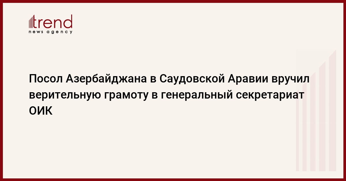 Посол Азербайджана в Саудовской Аравии Тофиг Абдуллаев вручил верительную грамоту в генеральный секретариат ОИК. Об этом сообщили Trend в штаб-квартире Организации Исламской Конференции.