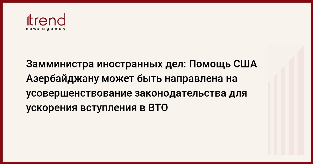 Согласно плану мероприятий изменения в законодательстве должны быть осуществлены до конца 2007 года. От этого зависит завершение переговорного процесса по вступлению во Всемирную организацию. По мнению М.Мамедкулиева, американская помощь, которая была предложена стране, может быть именно в этом направлении.