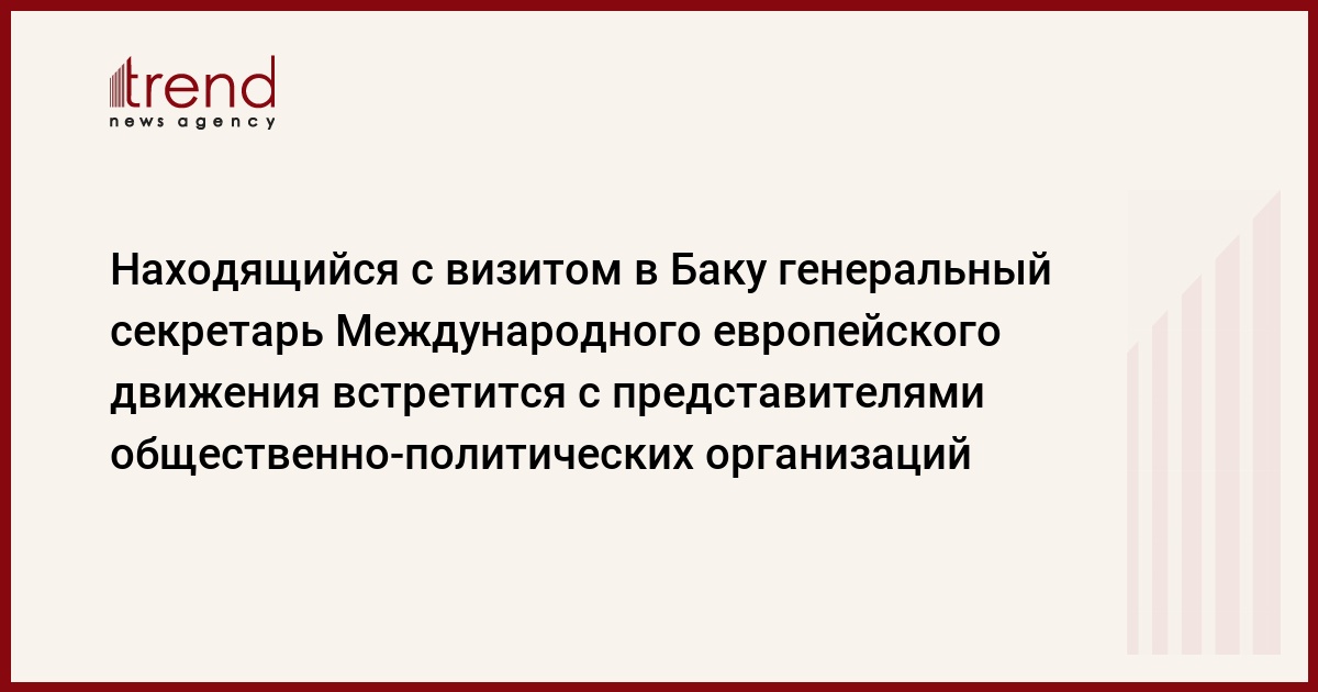 15 февраля находящийся с визитом в Азербайджане генеральный секретарь Международного европейского движения Хенрик Кронер встретится с представителями Подготовительного комитета движения по Азербайджану и представителями широкой общественности. Об этом Trend сообщили в Подготовительном комитете движения по Азербайджану.