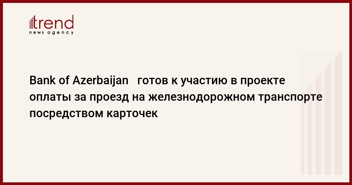 Азербайджан, Баку /корр. Trend И.Халилова / Запуск проекта по переходу к оплате стоимости за проезд в железнодорожном транспорте посредством карточек зависит от активизации процесса внедрения процессинговым центром "Азерикард" чиповых платежных карт, сообщил председатель правления Bank of Azerbaijan Мамед Гасанли. Эти мероприятия намечены в связи с переходом на безналичный расчет. Помимо Bank of Azerbaijan , к этому проекту проявляют интерес Международный банк Азербайджана и другие банки.
