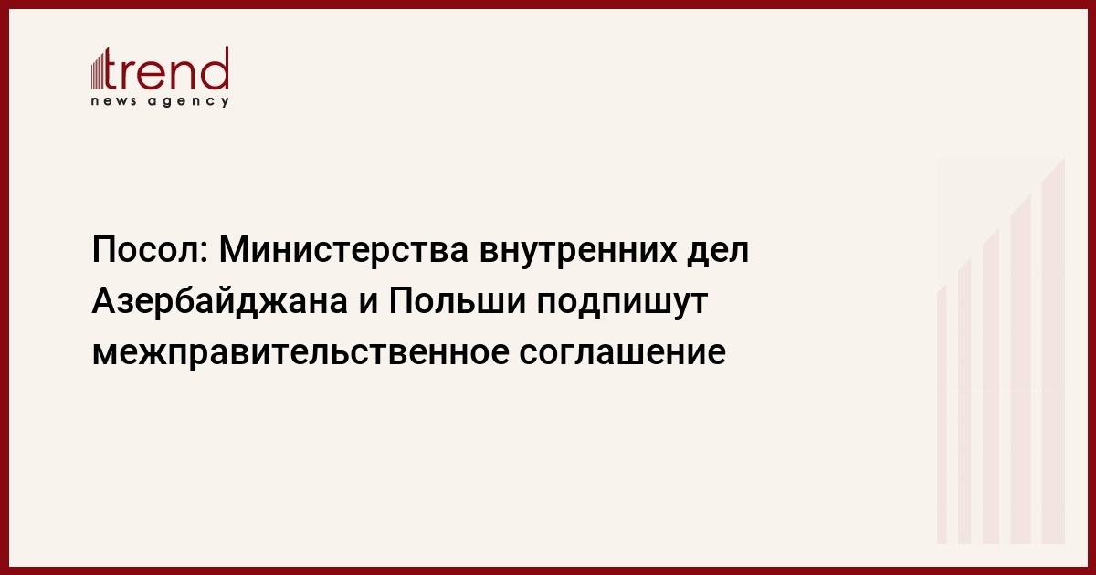 Азербайджан, Баку /корр. Trend И.Халилова/ Азербайджан и Польша планируют в июне подписать межправительственное соглашение между министерствами внутренних дел. Как сообщил в понедельник посол Польши в Азербайджане Кшиштоф Краевски, 1 июня в Баку ожидается визит министра внутренних дел Польши Януша Качмарека.