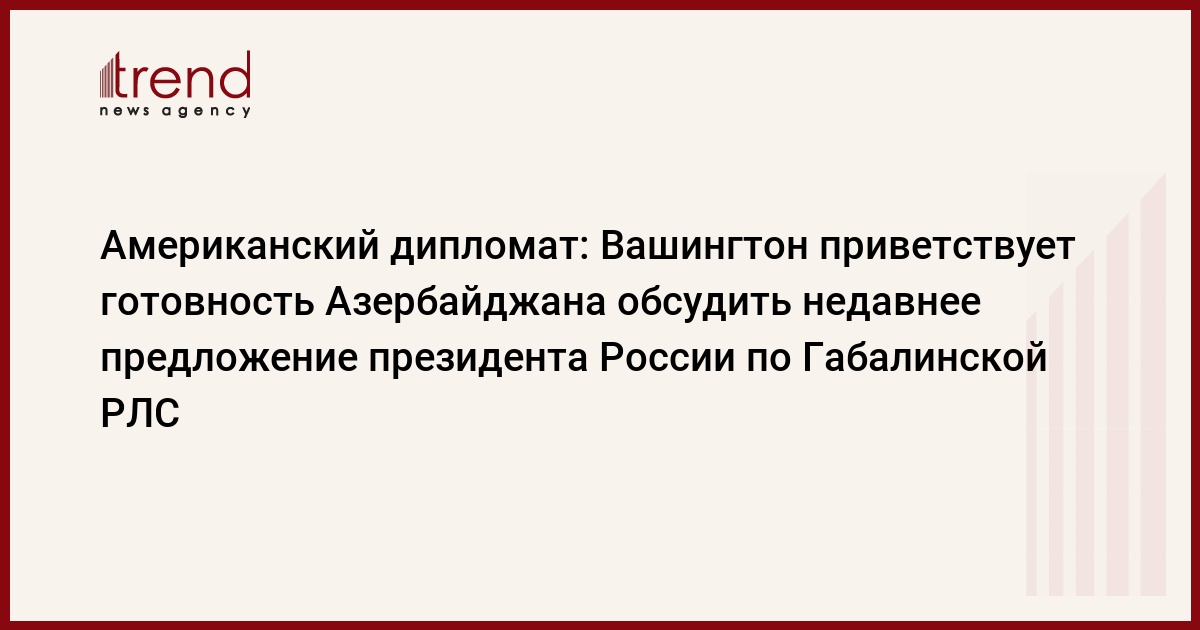 "Мы можем только приветствовать готовность Азербайджана обстоятельно обсудить его вместе с нами", - сказал заместитель помощника госсекретаря США Мэтью Брайза в интервью русской службе "Голос Америки", опубликованном на сайте этой радиостанции.