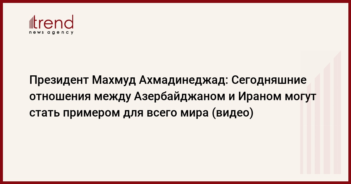 Азербайджан, Баку /корр. Trend П.Кесамански/ Сегодняшние отношения между Азербайджаном и Ираном могут стать примером для всего мира, заявил в среду на пресс-конференции в Баку азербайджанским и иранским журналистам президент Ирана Махмуд Ахмадинеджад.