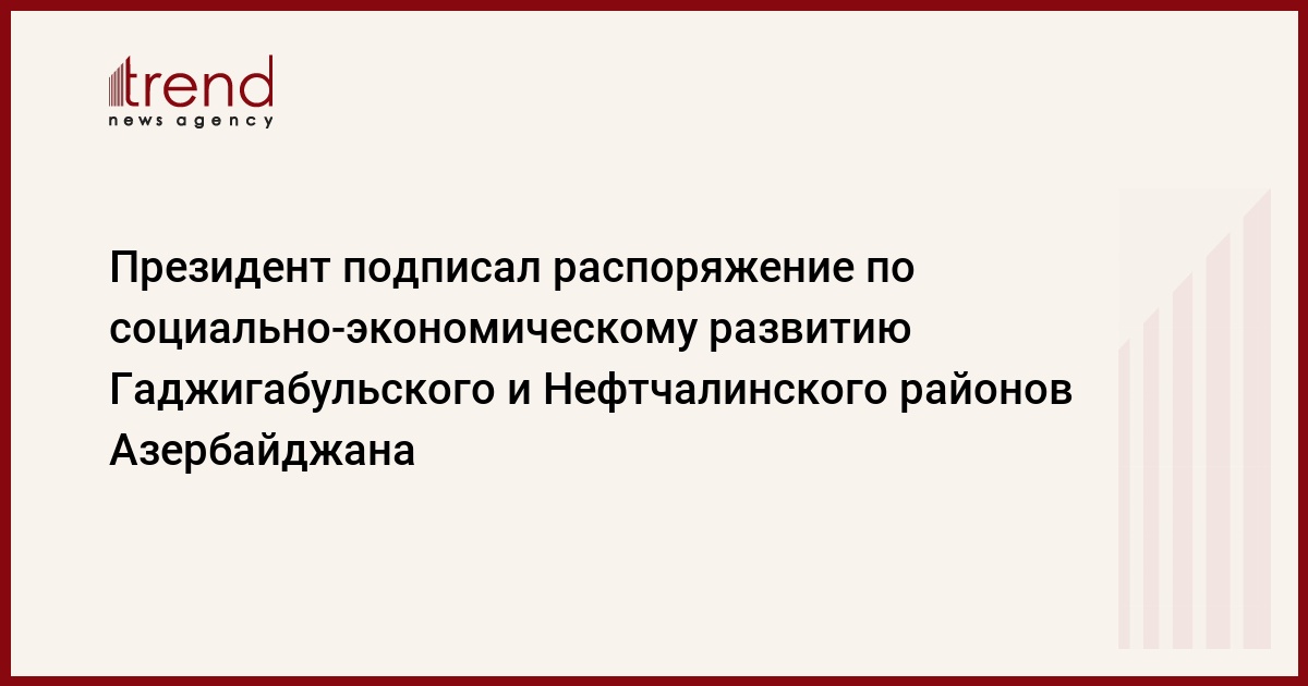 В среду президент Ильхам Алиев подписал два распоряжения по социально-экономическому развитию двух регионов. Средства будут выделены Министерством финансов, а Кабмин решит исходящие из распоряжений вопросы.