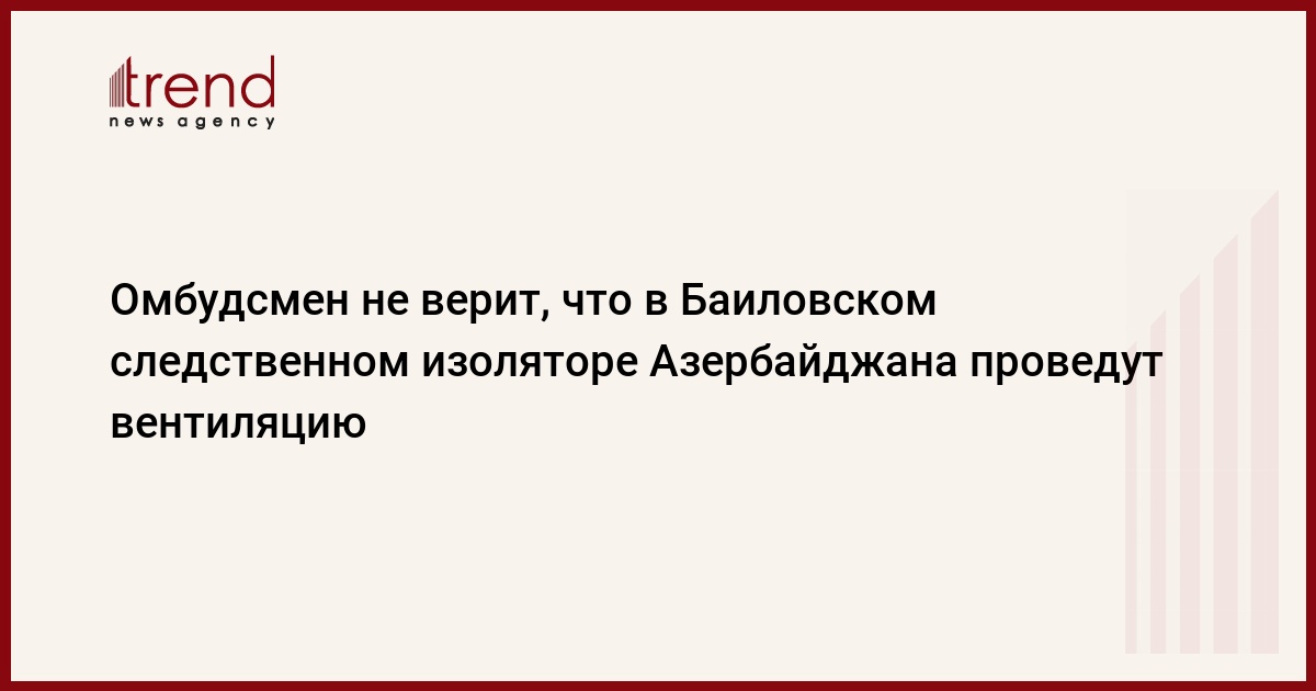 Азербайджан, Баку /корр. Trend С.Ильхамгызы / Не верится, что на установку вентиляционной системы в Баиловском следственном изоляторе №1, который планируется снести, вложат дополнительные средства. Об этом в пятницу сообщила уполномоченный по правам человека Азербайджана Эльмира Сулейманова.