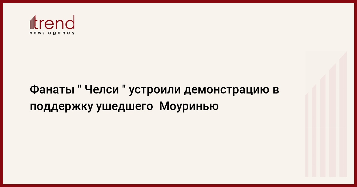 Болельщики лондонского футбольного клуба " Челси " устроили в четверг вечером перед стадионом " Стэмфорд Бридж" демонстрацию в поддержку неожиданно ушедшего с поста главного тренера клуба Жозе Моуринью , передает британский телеканал " Скай Ньюз ".