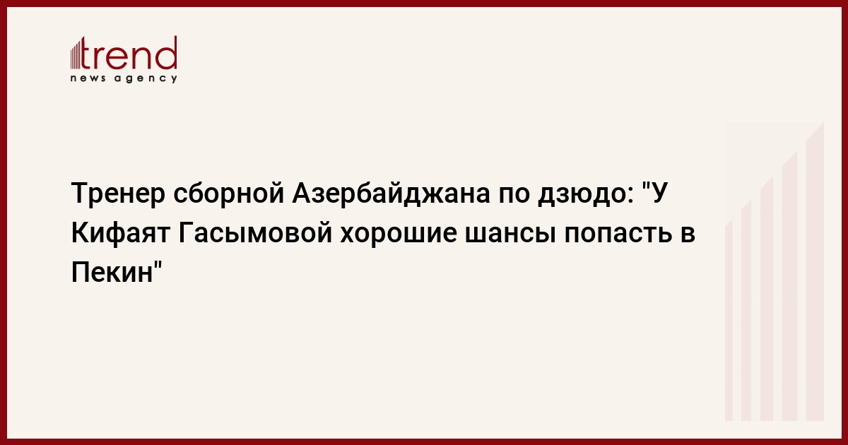 Азербайджан, Баку /корр. Trend З.Сафаров/ "У Кифаят Гасымовой очень хорошие шансы завоевать лицензию на Олимпиаду". Так Trend прокомментировал олимпийские перспективы своей подопечной тренер сборной Азербайджана по дзюдо Ибадулла Шабанов.