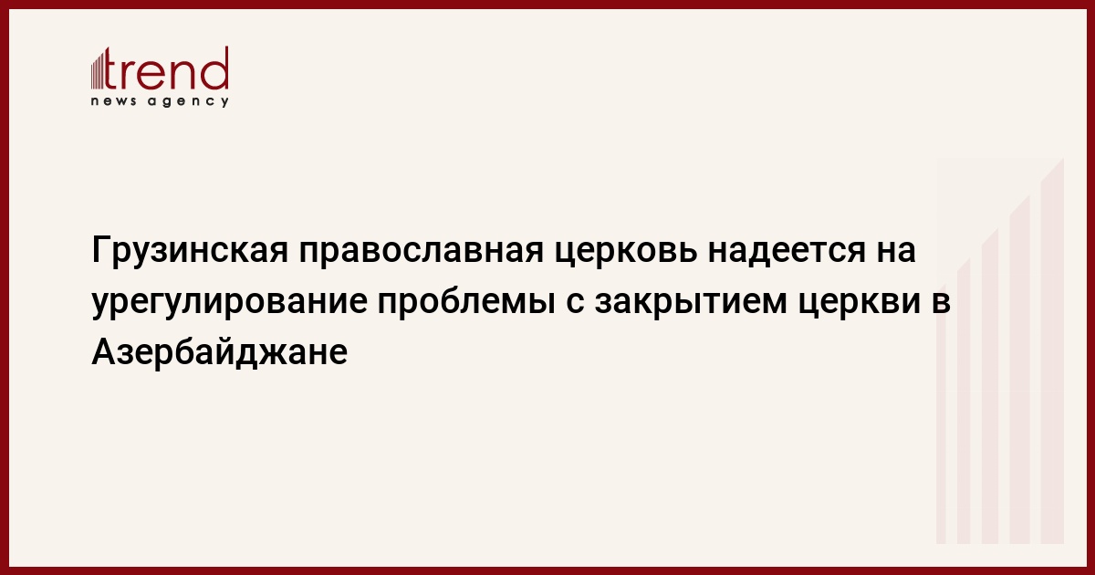 Грузия, Тбилиси /корр. Trend Н.Кирцхалиа/ Грузинская православная церковь надеется на быстрое решение проблемы с закрытием единственной грузинской церкви в Гахском районе Азербайджана. "Конструктивные и дружеские отношения между руководителями двух государств и духовными лидерам дают надежду на то, что проблемы между двумя странами, в том числе и c Курмухской церковью, будут решены в самое ближайшее время", - говорится в распространенном сегодня заявлении Патриархии Грузии.