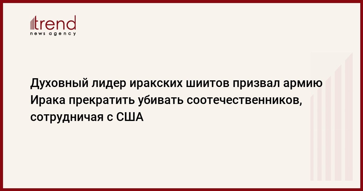 Один из лидеров иракских шиитов радикальный проповедник Муктада ас-Садр призвал армию и полицию Ирака прекратить убивать и причинять другой вредсвоим соотечественникам-иракцам под предлогом самозащиты. Тот же призыв онадресовал своим последователям из "Армии Махди ", передает Associated Press ."Вы - армия и полиция Ирака. Так не убивайте других иракцев во имя светскихзаконов или во имя "установления закона", - заявил проповедник."Установление закона" - название совместной американо-иракской операции пообеспечению безопасности в районе Багдада.Он также призвал солдат и полицейских правительственной армии и полицииИрака не защищать и не поддерживать "американских оккупантов", поскольку"наводя порядок, нельзя сотрудничать с оккупантами". По его мнению,установление порядка в стране возможно лишь путем мира и сострадания. РБК