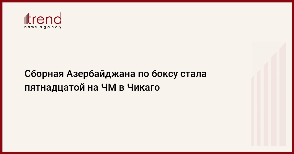 Азербайджан, Баку /корр. Trend З.Сафаров/ Сборная Азербайджана по боксу заняла пятнадцатое место в медальном зачете на чемпионате мира в Чикаго.