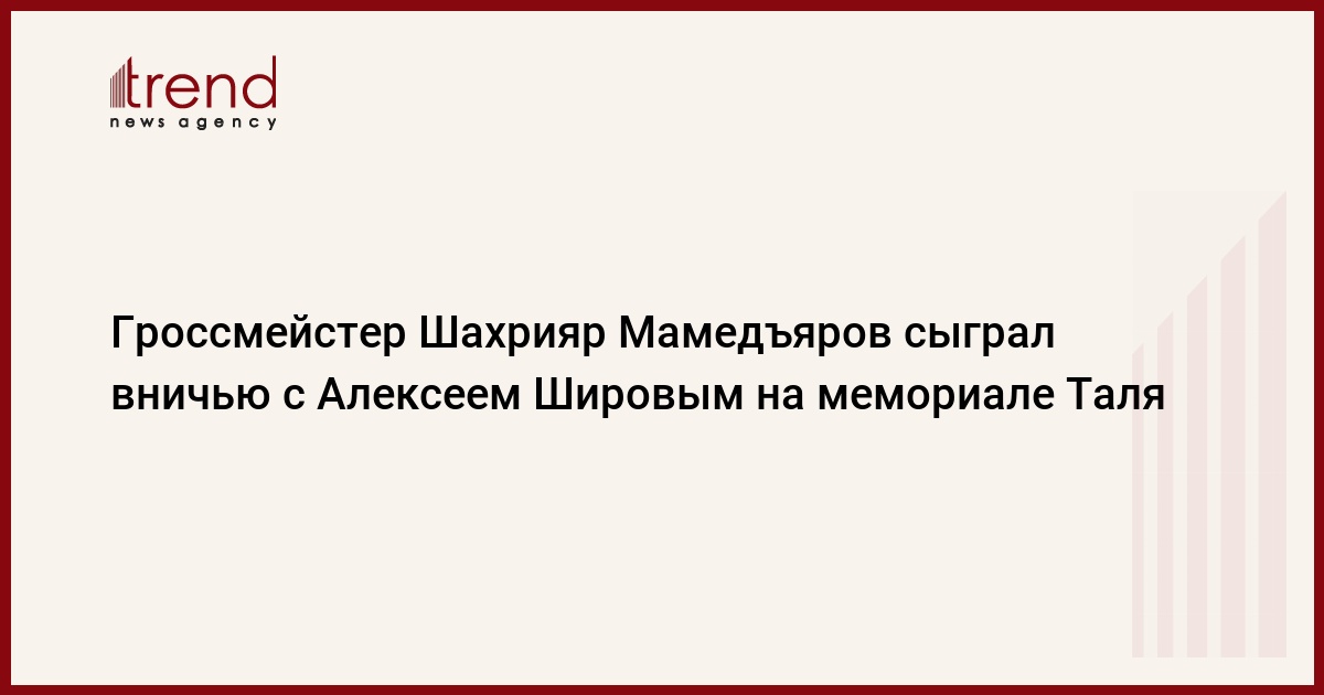 Азербайджан, Баку /корр. Trend З.Сафаров/ Азербайджанский гроссмейстер Шахрияр Мамедъяров сыграл вничью и во втором туре кругового турнира в рамках мемориала Михаила Таля, проходящего в Москве.