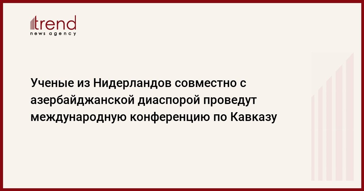 Азербайджан, Баку /корр. Trend С.Ильхамгызы/ Ученые Амстердамского Университета совместно с азербайджанскими диаспорcкими организациями проведут I Международную конференцию по Кавказу. Как сообщили в понедельник в Госкомитете по работе с азербайджанцами, проживающими за рубежом, соглашение об этом было достигнуто в ходе состоявшегося в Амстердаме в конце прошлой недели I съезда "Правовые условия и перспективы неправительственных организаций Европы".