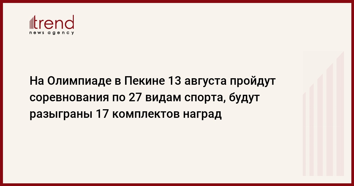 На Олимпиаде в Пекине 13 августа пройдет пятый соревновательный день, он станет самым насыщенным со дня открытия Игр: соревнования пройдут по 27 видам спорта, будут разыграны 17 комплектов наград, передает РБК .