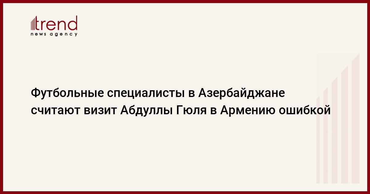 Азербайджан, Баку, 4 сентября /корр. Trend Р.Эргюн/ Футбольные специалисты Азербайджана с протестом встретили визит Абдуллы Гюля в Ереван для участия на футбольном матче сборных Армении и Турции, который пройдет в рамках отборочного этапа ЧМ-2010. Об этом Trend стало известно после опроса футбольных специалистов по данному вопросу.