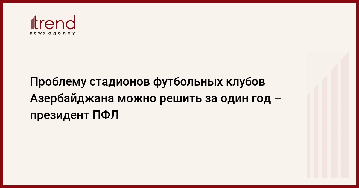Азербайджан, Баку, 19 сентября /корр. Trend Р.Эргюн/ Президент Профессиональной Футбольной Лиги (ПФЛ) Рамин Мусаев считает, что проблему со стадионами клубов - участников Премьер-лиги, можно решить в течение одного года.