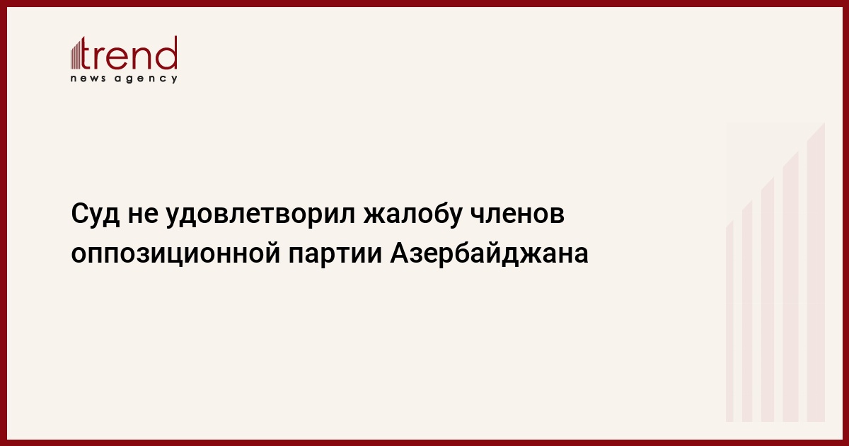 Азербайджан, Баку, 22 сентября /корр. Trend News К.Зарбалиева/ Суд не удовлетворил жалобу группы членов партии "Мусават" против Исполнительной власти (ИВ) Баку.