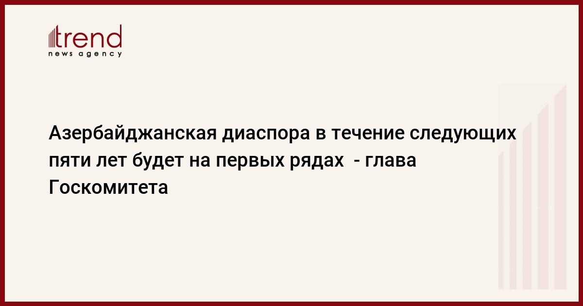 Азербайджан, Баку, 18 декабря /корр. Trend Дж.Бабаева/ В течение следующих пяти лет азербайджанская диаспора выйдет в первый ряд диаспорских организаций других стран, сказал в четверг журналистам Назим Ибрагимов, председатель Госкомитета по работе с диаспорой.