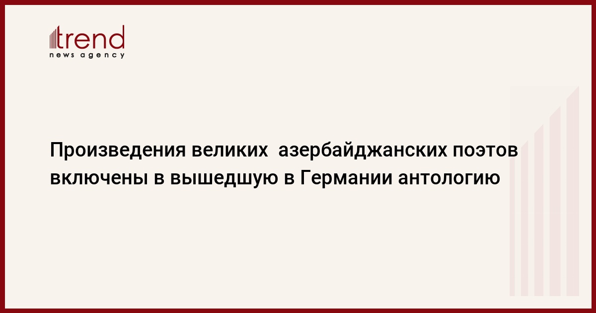 Антология была опубликована Азербайджанским институтом искусств имени Низами Гянджеви в ФРГ. Произведения были переведены на немецкий язык директором института, поэтом Нуридой Аташи и немецким поэтом Жаном Вайнертом, сообщили Trend в пятницу в институте.