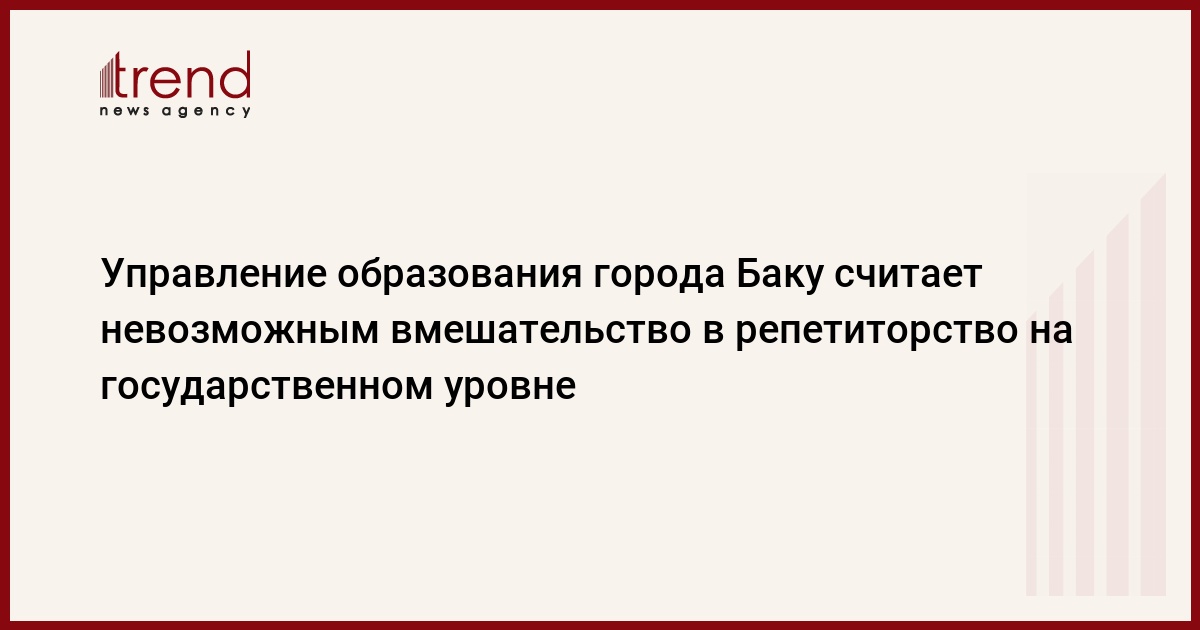 Азербайджан, Баку, 5 февраля /корр. Trend В.Мамедова/ Управление образования города Баку считает невозможным вмешательство в репетиторство на государственном уровне.
