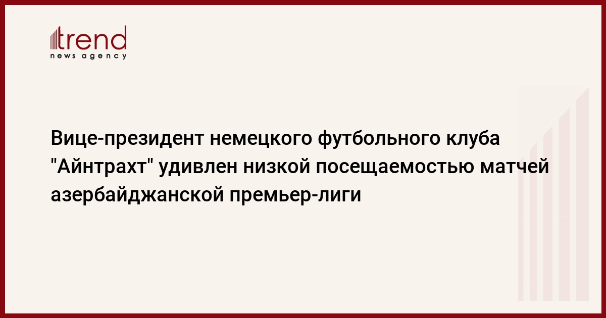 Азербайджан, Баку, 20 февраля /корр. Trend Р.Эргюн/ Вице-президент немецкого футбольного клуба "Айнтрахт" Аксель Хелльман выразил свое удивление, когда увидел на играх азербайджанской премьер-лиги пустые стадионы.