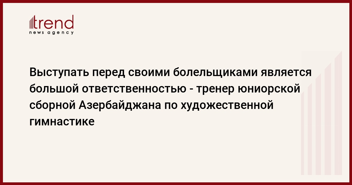 Азербайджан, Баку, 17 мая /корр. Trend Д.Ибрагимова/ Выступать перед своими болельщиками является большой ответственностью. Об этом на пресс-конференции в Баку заявила тренер юниорской сборной Азербайджана по художественной гимнастике Марианна Василева.