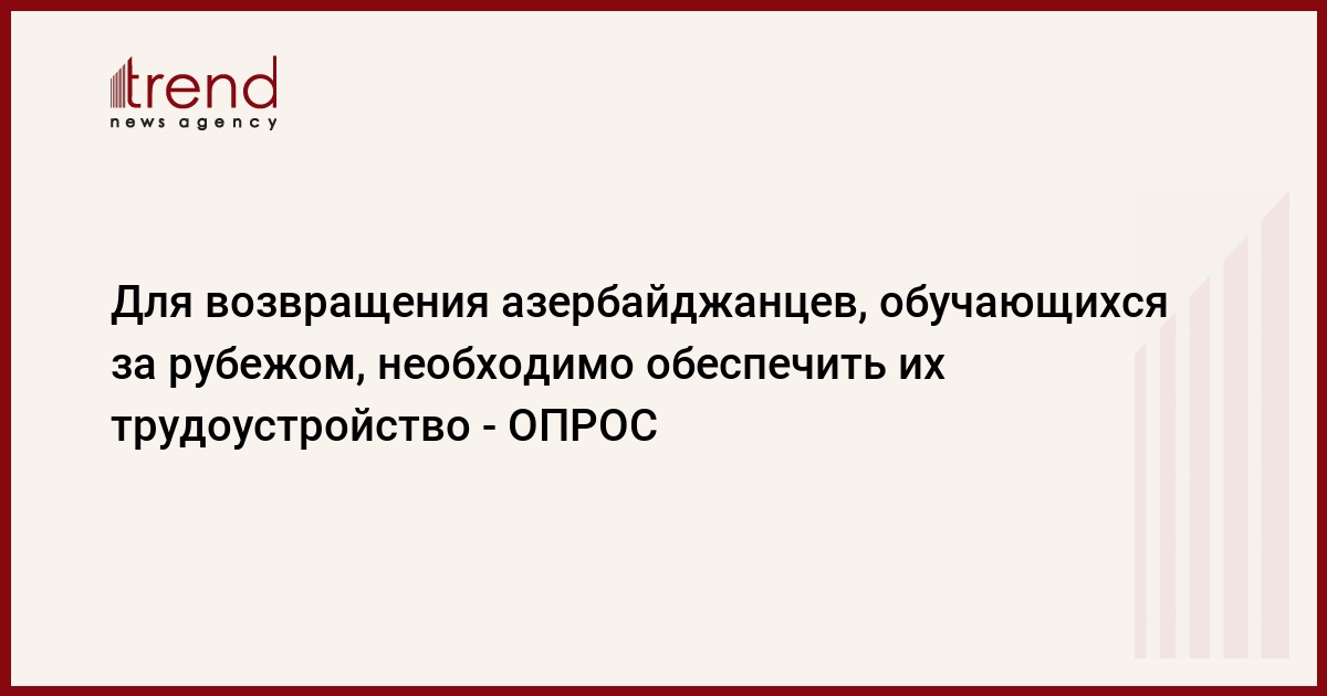 Азербайджанское правительство занимается подготовкой проекта программы с целью обеспечения азербайджанской молодежи, получающей образование за государственный счет за рубежом, работой на родине. Министр образования Мисир Марданов сказал на прошлой неделе журналистам, что в обсуждениях относительно подготовки проекта участвовали представители министерства экономического развития, министерства труда и социального обеспечения населения, министерства финансов, комиссии по вопросам государственной службы при президенте и других государственных структур. Информационное агентство Trend провело опрос касательно вклада молодежных организаций Азербайджана в этот проект.