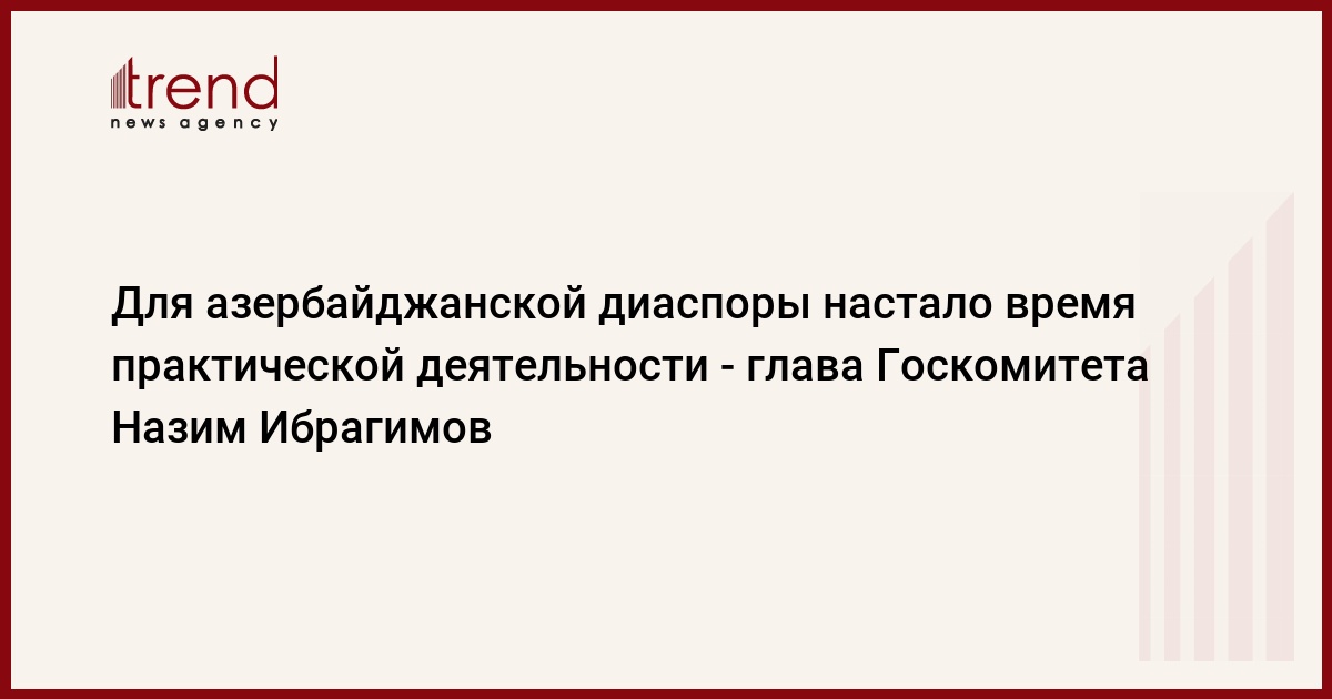 Работу по организации азербайджанской диаспоры можно считать завершенной и настало время практической деятельности, считает глава Госкомитета по работе с диаспорой Назим Ибрагимов.