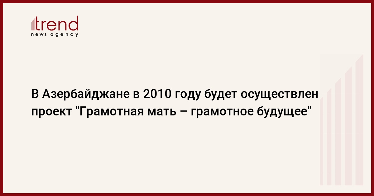 В Азербайджане в 2010 году будет осуществлен проект "Грамотная мать - грамотное будущее"