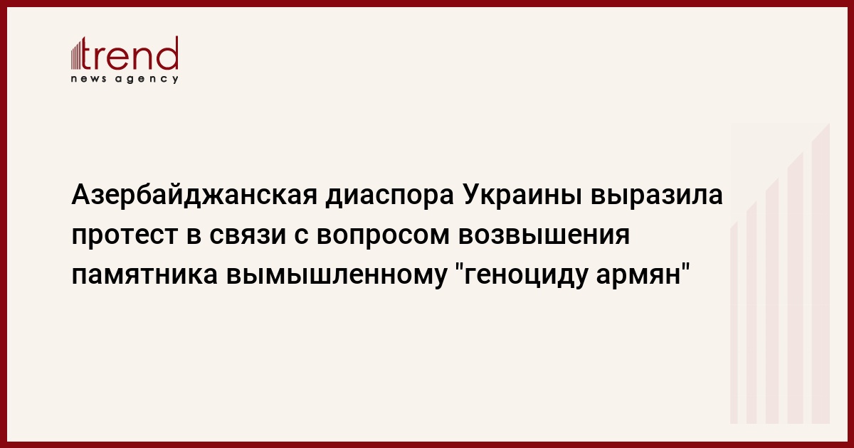 Азербайджанская диаспора Украины выразила протест первым лицам страны в связи с вопросом возвышения памятника "жертвам" вымышленного "геноцида армян" в Киеве, сказал в среду Trend председатель Конгресса азербайджанцев Украины Акиф Гульмамедов.