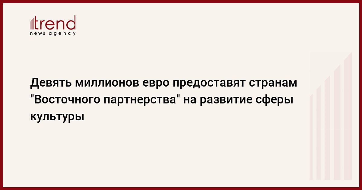 Тендер на участие в конкурсе в рамках Культурной программы "Восточного партнерства" будет объявлен в конце 2010 года. Финансирование программы осуществляется Европейским инструментом соседства и партнерства (ЕИСП) в размере девяти миллионов евро, говорится в ежегодном отчете, опубликованном ЕИСП на сайте EuropeAid.