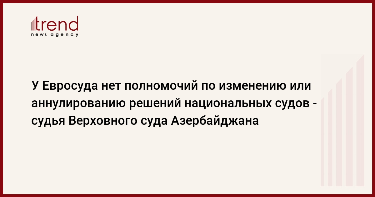 У Европейского суда по правам человека нет полномочий по изменению или аннулированию решений национальных судов, считает судья Верховного суда (ВС) Азербайджана.