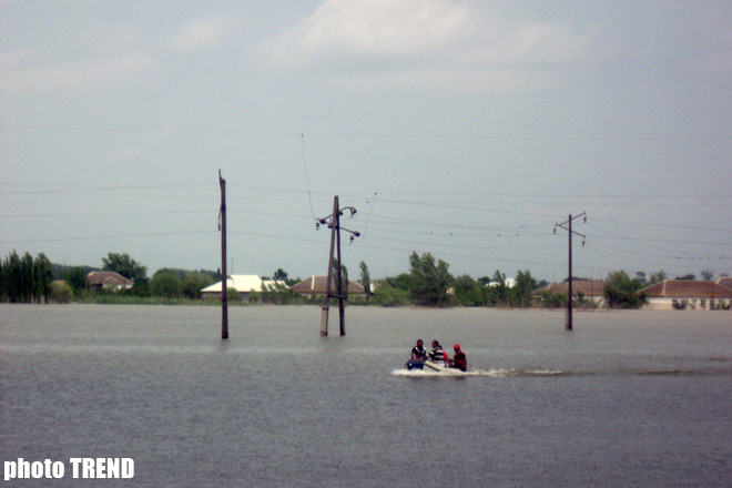 В последние дни в результате выхода реки Кура из берегов и проливных дождей зафиксированы наводнения на территории 40 районов Азербайджана. В результате стихийного бедствия около 20 тысяч домов затоплены, более 300 разрушены, 2 тысячи находятся в аварийном состоянии, 50 тысяч гектаров посевных земель остались под водой.