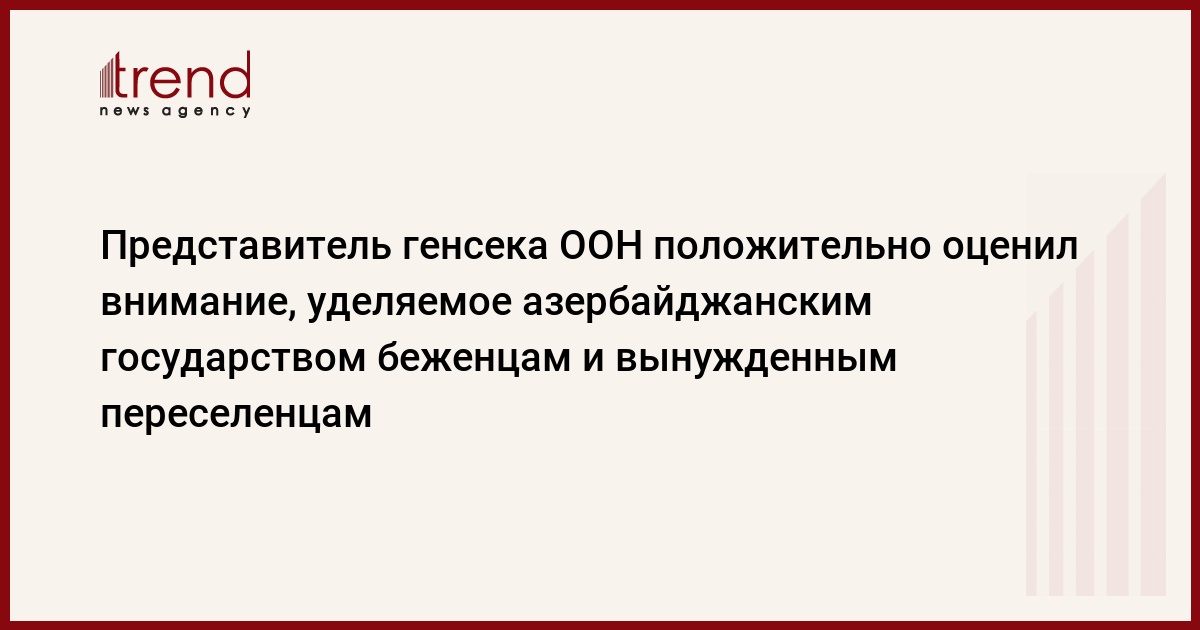 Представитель генерального секретаря ООН по правам внутренне перемещенных лиц положительно оценил внимание, уделяемое азербайджанским государством беженцам.