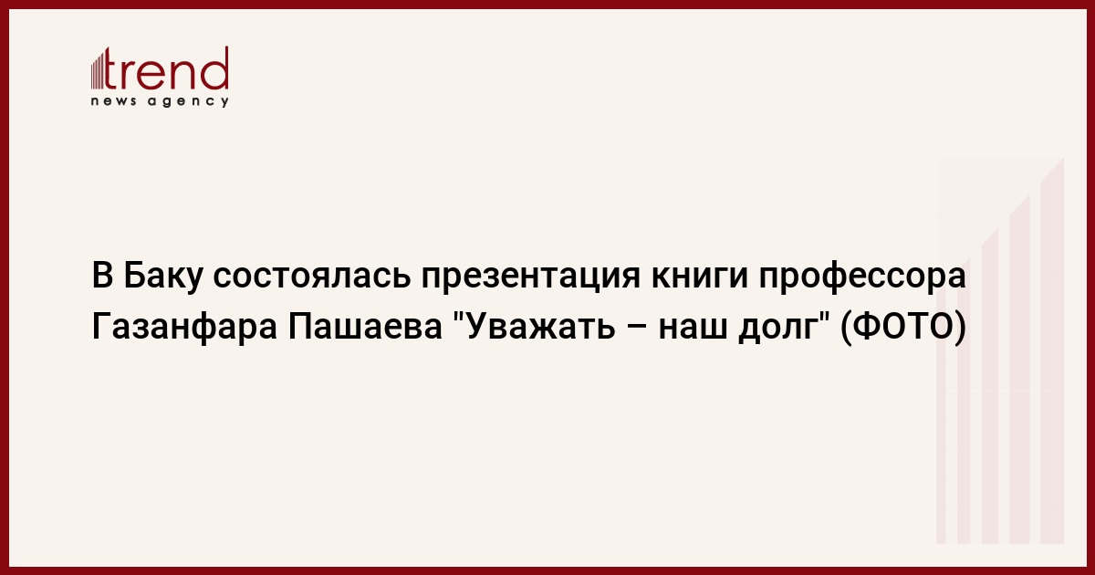 В пятницу состоялась презентация новой книги азербайджанского профессора, доктора филологических наук Газанфара Пашаева "Уважать - наш долг".