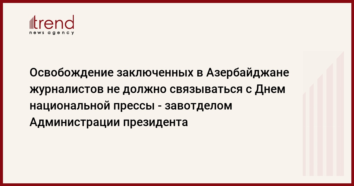 Освобождение заключенных в Азербайджане журналистов не должно связываться с Днем национальной прессы, сказал в пятницу журналистам заведующий отделом Администрации президента по общественно-политическим вопросам Али Гасанов.