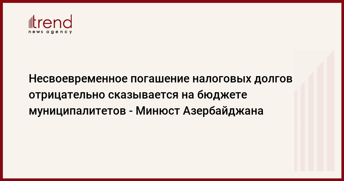 В Азербайджане несвоевременное погашение населением налоговых долгов отрицательно сказывается на бюджете муниципалитетов, сказал в среду Trend глава центра по работе с муниципалитетами министерства юстиции Мехти Салимзаде.