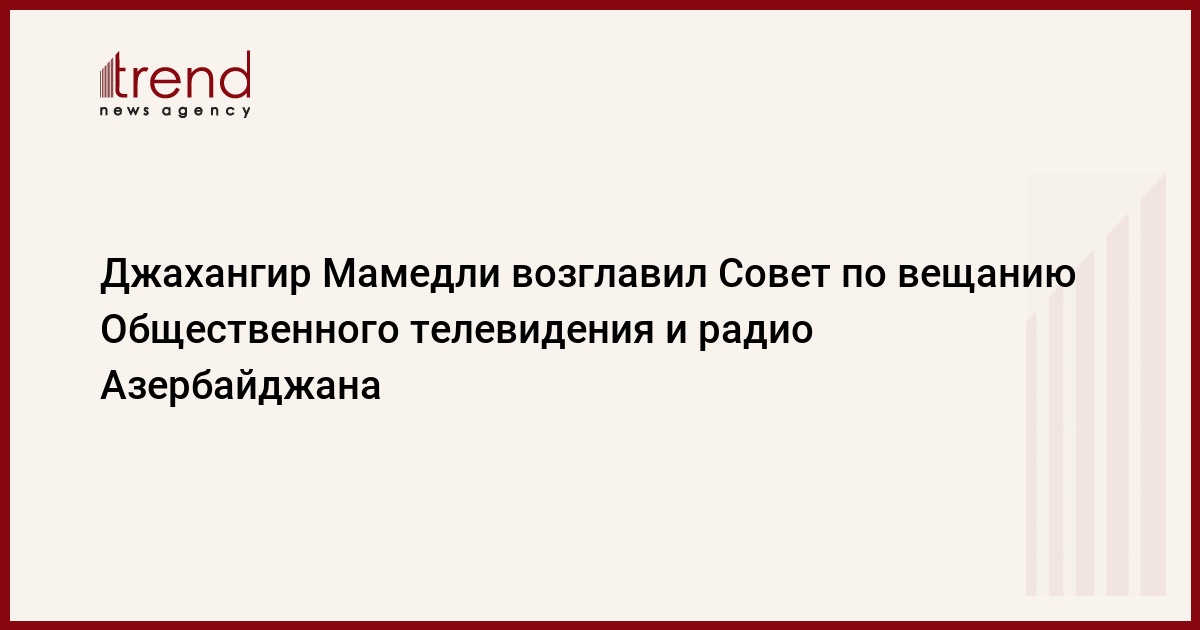 Джахангир Мамедли во вторник избран председателем Совета по вещанию Общественного телевидения и радио Азербайджана, говорится в сообщении Национального совета по телевидению и радио Азербайджана (НСТРА).
