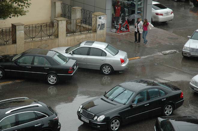 Ночью с пятницы на субботу на столицу Азербайджана обрушился сильный ливень. Улицы оказались затопленными потоками воды. Синоптики предупреждали о возможном выпадении осадков в выходные.