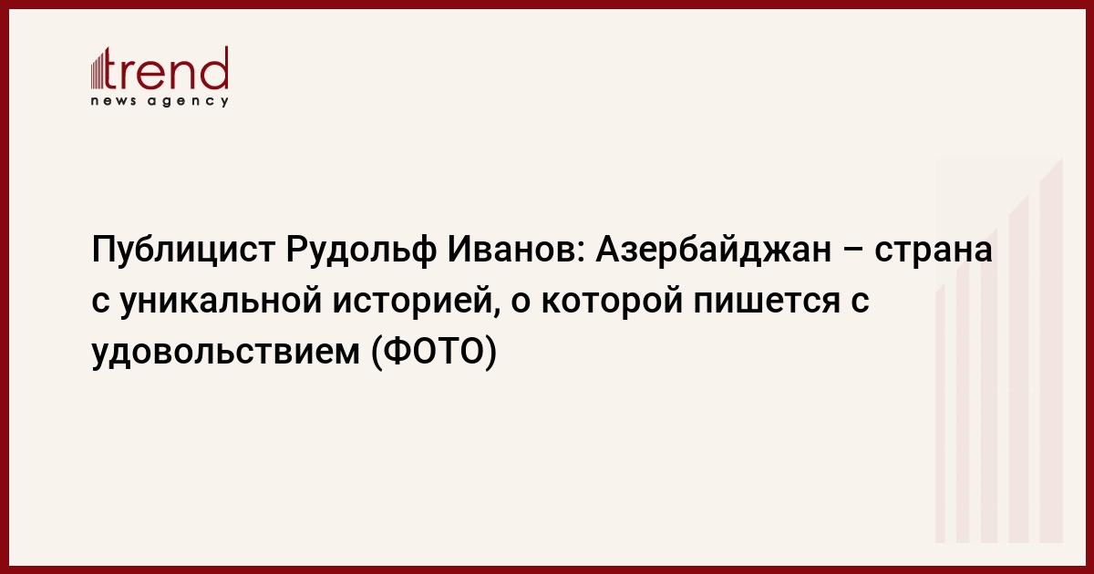 Интервью Trend с известным российским писателем-историком и публицистом, почетным доктором Института истории Национальной Академии Наук Азербайджана, почетным членом Союза писателей Азербайджана, кавалером азербайджанского ордена "Достлуг" Рудольфом Ивановым.