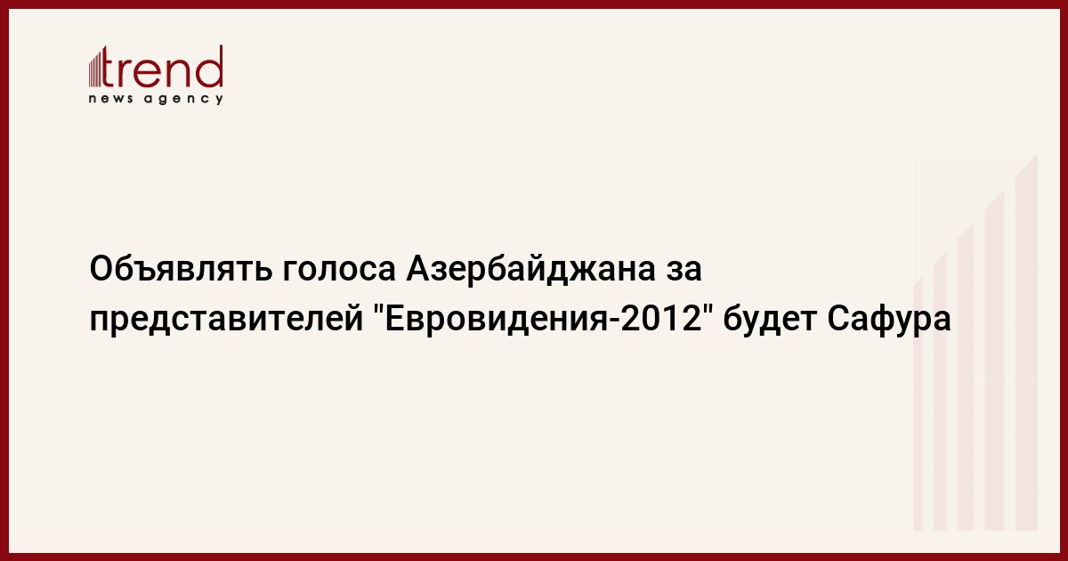 На финале песенного конкурса "Евровидение-2012" объявлять голоса от Азербайджана в прямом эфире будет Сафура Ализаде, сообщает в пятницу официальный сайт конкурса.