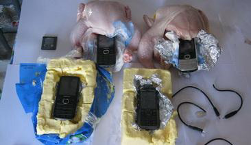 Во время проверки внутри двух принесенных кур были найдены и изъяты по одному мобильному телефону "Nokia-6700c-1", внутри килограмма сливочного масла - по одному мобильному телефону "Nokia-5310" и "Nokia-6710c-1", а также заряжающиеся батарейки для двух телефонов и наконечники зарядок для четырех телефонов.