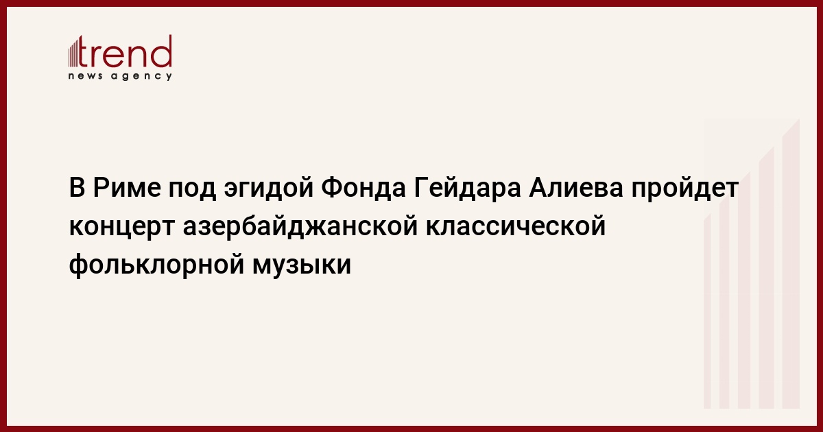 В Риме 15 ноября под эгидой Фонда Гейдара Алиева ожидается проведение большого концерта, посвященного азербайджанской классической и фольклорной музыке, сообщил в среду журналистам посол Азербайджана в Италии Вагиф Садыхов.
