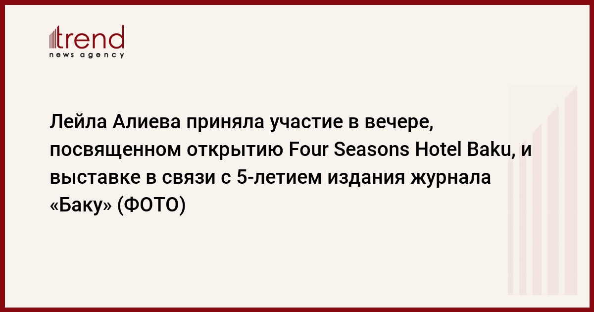 В Баку в субботу состоялись торжественный вечер, посвященный открытию пятизвездочного отеля Four Seasons Hotel Baku, и выставка в связи с 5-летием издания журнала "Баку".